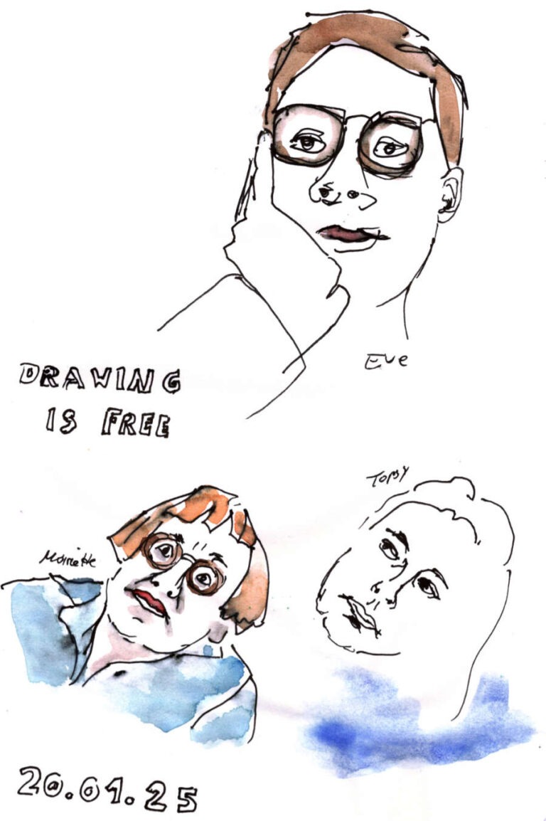 Entstanden sind diese schnelle Skizzen und viele, viele mehr, in den Zoommeetings der Portrait Zoomsessions von @drawingisfree_org & @pencils4tea mit weltweit teilnehmenden Künstlern (artists drawing artists).