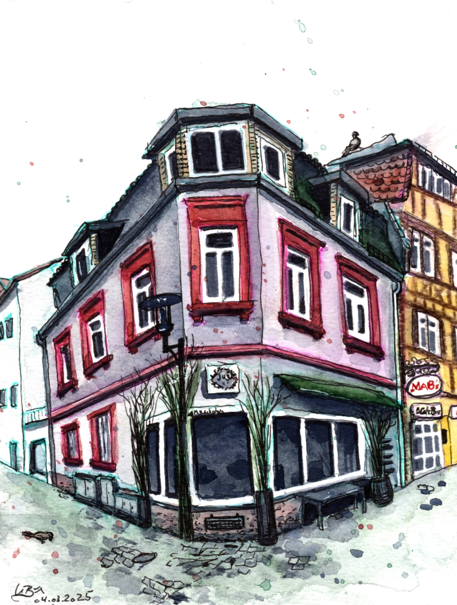 Gegen ein Entgelt von 20 € biete ich vor den Treffen eine einstündige Einführung in Urban Sketching an. Eine kleine Materialkunde und kurze Einführung in Perspektive, Tipps&Tricks.